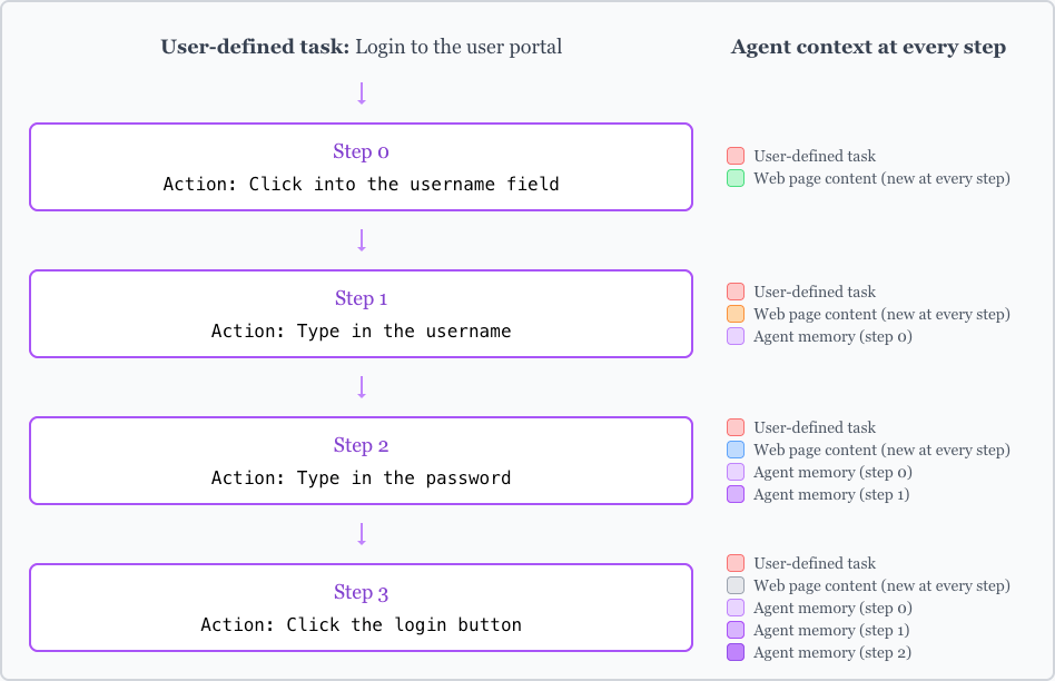 Browser agent context at a given step